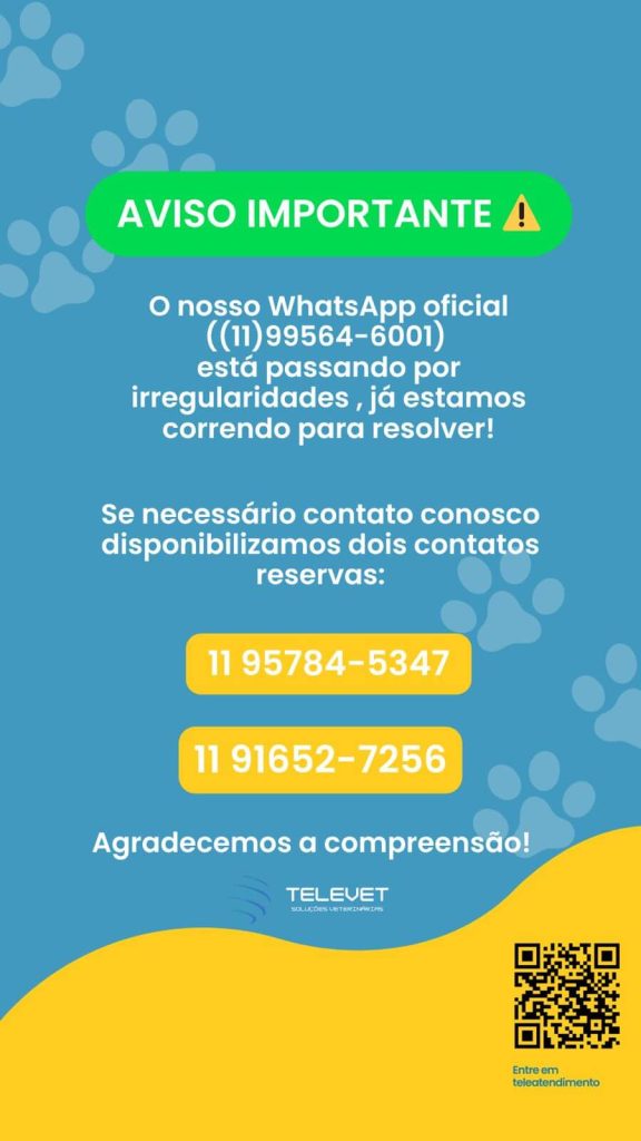 Informamos que, a partir do dia 10/03/2025, o valor da orientação veterinária para as cidades que não possuem hospitais públicos conveniados com a Televet será ajustado de R$ 19,90 para R$ 24,90.